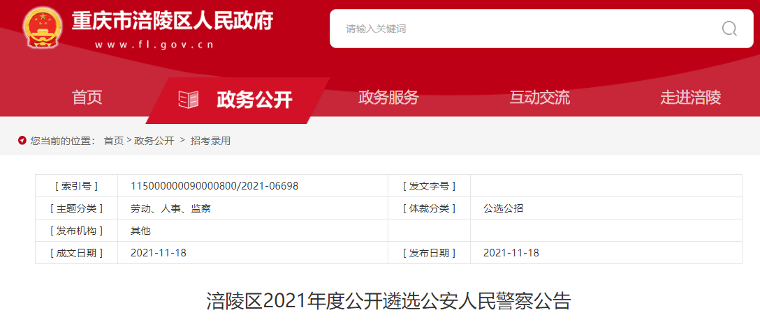 2021年重慶涪陵區(qū)公開遴選公安人民警察公告已公布,為了方便廣大考生的查閱,下面為您詳細介紹一下本次遴選公安人民警察的具體事宜,希望廣大考生及時關(guān)注,如有相關(guān)疑問,請關(guān)注遴選考試頻道為您實時做出的更新。