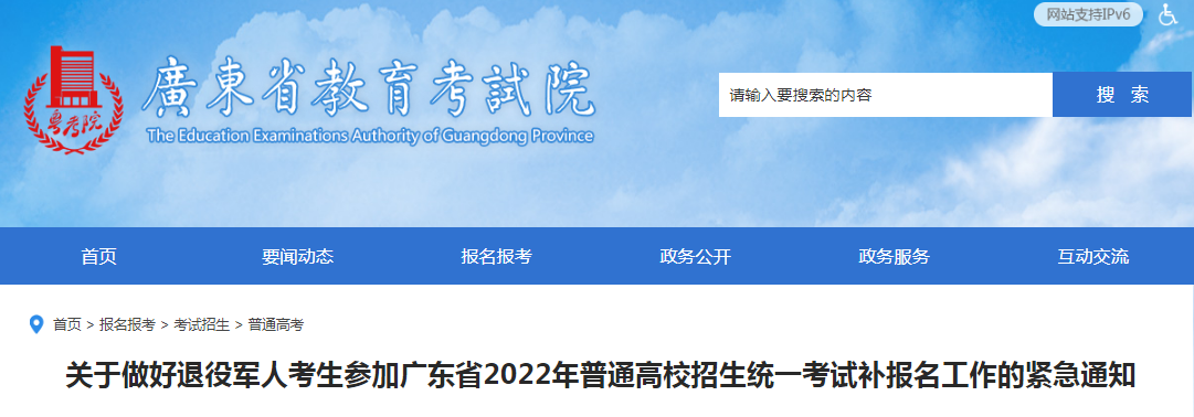 從廣東省教育考試院了解到,關(guān)于做好退役軍人考生參加廣東省2022年普通高校招生統(tǒng)一考試補(bǔ)報(bào)名工作的緊急通知已發(fā)布,詳細(xì)內(nèi)容如下: