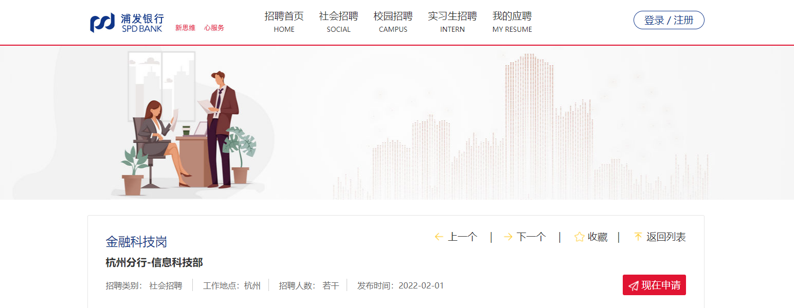 2022浦發(fā)銀行浙江杭州分行信息科技部社會招聘若干人,報名申請入口已開通,現(xiàn)將招聘詳情發(fā)布如下: