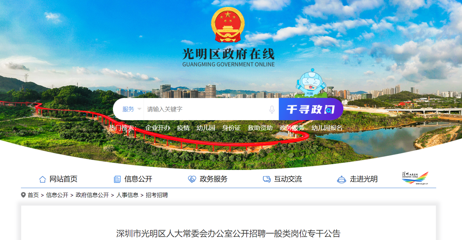 招聘職位及人數(shù)詳見《深圳市光明區(qū)人大常委會(huì)辦公室公開招聘一般類崗位專干職位表》(附件1)。
