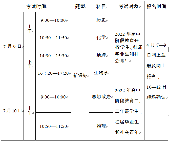 會(huì)考頻道根據(jù)廣東省教育考試院公布的《2022年第二次廣東省普通高中學(xué)業(yè)水平合格性考試報(bào)名工作的通知》了解到,2022年第二次廣東汕頭普通高中學(xué)業(yè)水平合格性考試時(shí)間已公布,安排在2022年7月9日-10日舉行。具體如下: