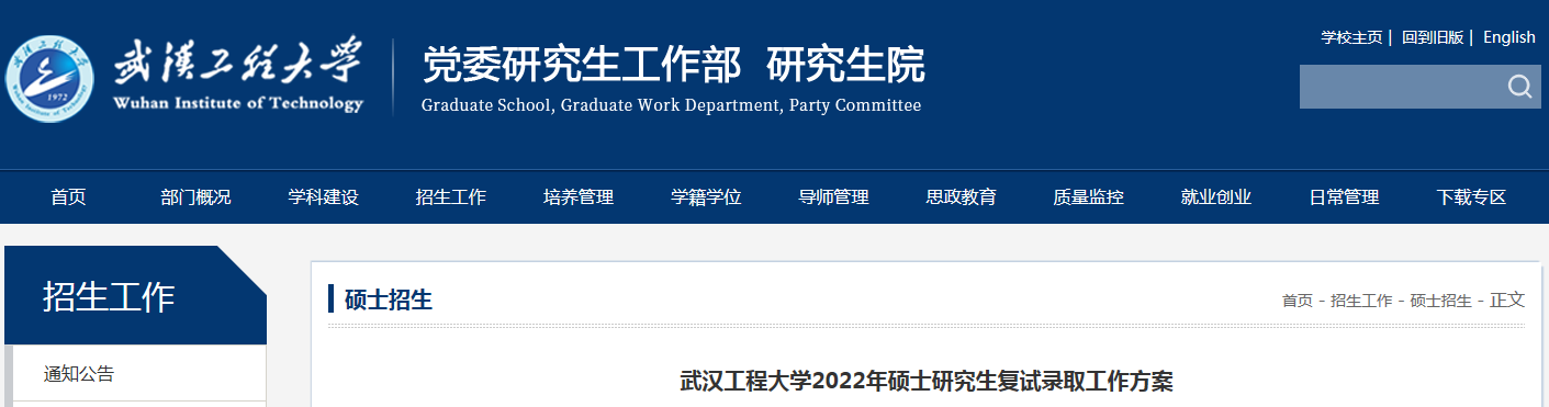 考研頻道從武漢工程大學(xué)研究生院了解到,武漢工程大學(xué)2022年碩士研究生復(fù)試錄取工作方案已發(fā)布,詳情如下: