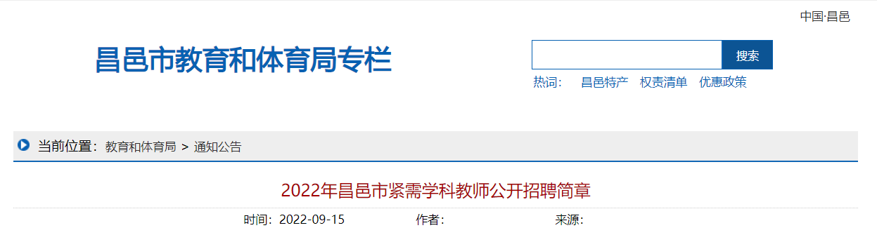 2022山東濰坊昌邑市緊需學(xué)科教師公開招聘簡(jiǎn)章已發(fā)布,報(bào)名時(shí)間為2022年9月26日9:00—9月29日16:00,現(xiàn)將招聘公告原文發(fā)布如下: