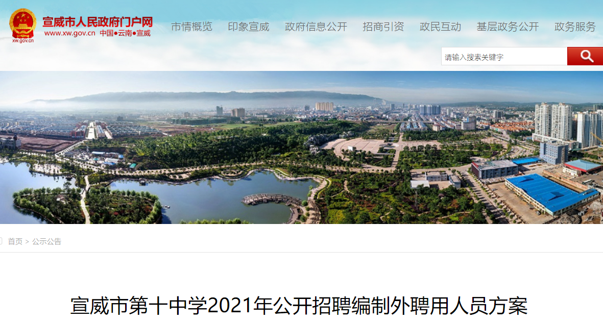 2021云南曲靖宣威市第十中學(xué)招聘編制外聘用人員2人,現(xiàn)場(chǎng)報(bào)名時(shí)間:2021年11月25日上午8:30-11:30,下午2:30-5:30,現(xiàn)將招聘公告原文發(fā)布如下: