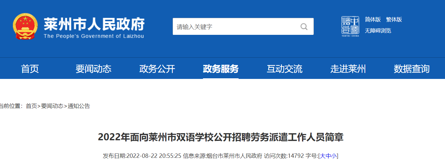 招聘通知、招聘信息公告公示網(wǎng)站:萊州市政府網(wǎng)(http://www.laizhou.gov.cn/)