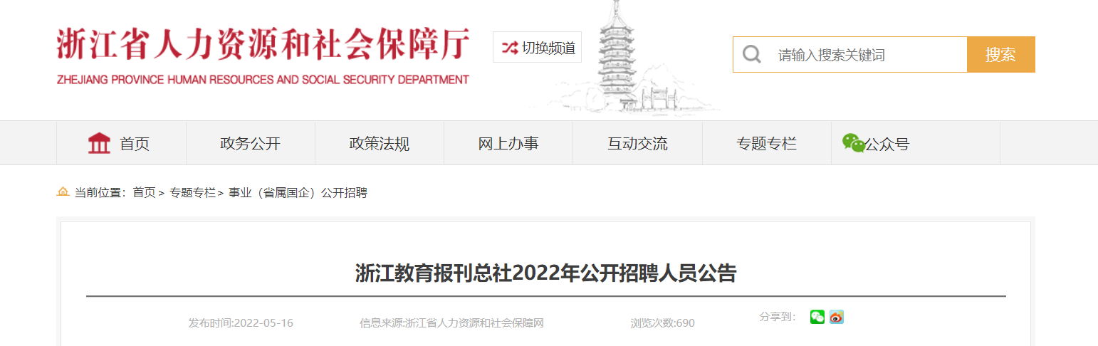 3.浙江省人力資源社會保障廳網(wǎng)站(http://rlsbt.zj.gov.cn/,事業(yè)單位招聘)。