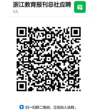 報名材料發(fā)送后,請下載釘釘客戶端,完成實名認證;掃描下面二維碼加入浙江教育報刊總社應聘群,報名完成。