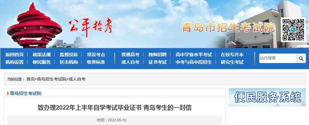 自考頻道從青島市招生考試院了解到,致辦理2022上半年自學(xué)考試畢業(yè)證書山東青島考生的一封信已發(fā)布,詳情如下: