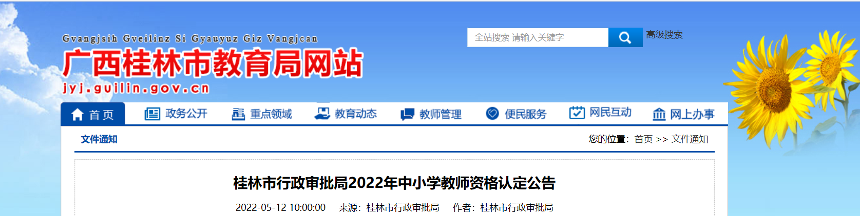 從廣西桂林市教育局網(wǎng)站獲悉,2022年廣西桂林中小學(xué)教師資格認(rèn)定公告 已公布,請(qǐng)相關(guān)人員仔細(xì)閱讀,具體詳情如下: