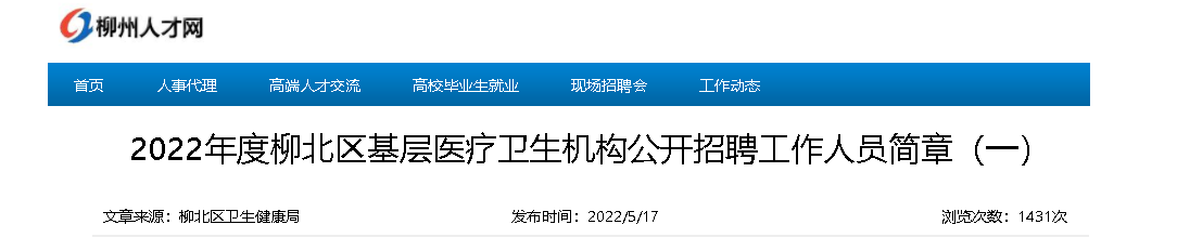 2022廣西柳州市柳北區(qū)基層醫(yī)療衛(wèi)生機(jī)構(gòu)招聘9人(一),報(bào)名時間:2022年5月17日至5月24日,現(xiàn)將招聘簡章原文發(fā)布如下: