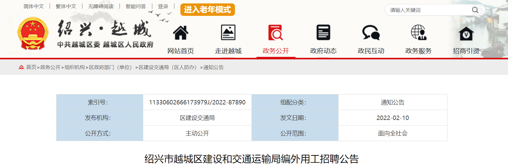紹興市越城區(qū)建設(shè)和交通運(yùn)輸局編外用工招聘崗位表