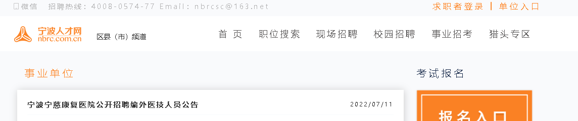 2022年浙江寧波寧慈康復(fù)醫(yī)院公開招聘編外人員15人,報(bào)名時(shí)間:2022年8月15日截止,現(xiàn)將招聘公告原文發(fā)布如下:
