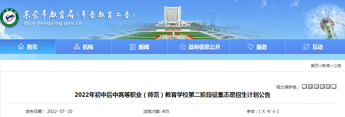 從東營市教育局了解到,2022年山東東營初中后中高等職業(yè)(師范)教育學校第二階段征集志愿招生計劃公告已發(fā)布,詳細內容如下: