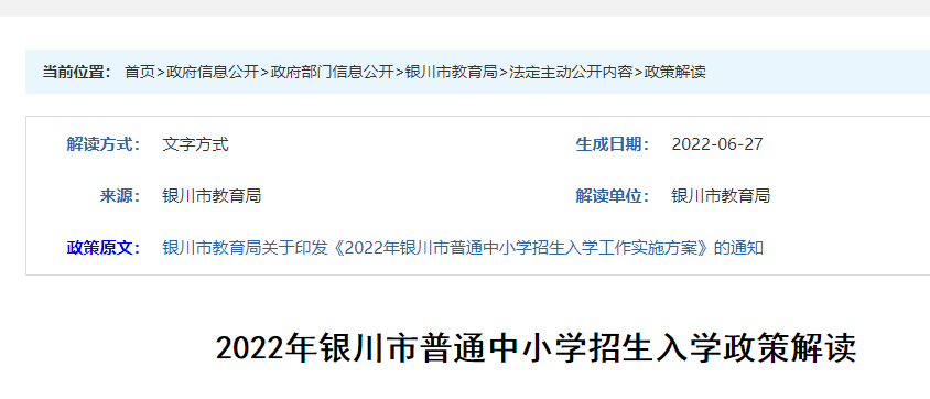 從銀川市人民政府網(wǎng)發(fā)布的《2022年銀川市普通中小學(xué)招生入學(xué)政策解讀》得知,2022年寧夏銀川中考成績(jī)查詢(xún)?nèi)肟谝验_(kāi)通,中考查分時(shí)間為7月12日起,詳情如下: