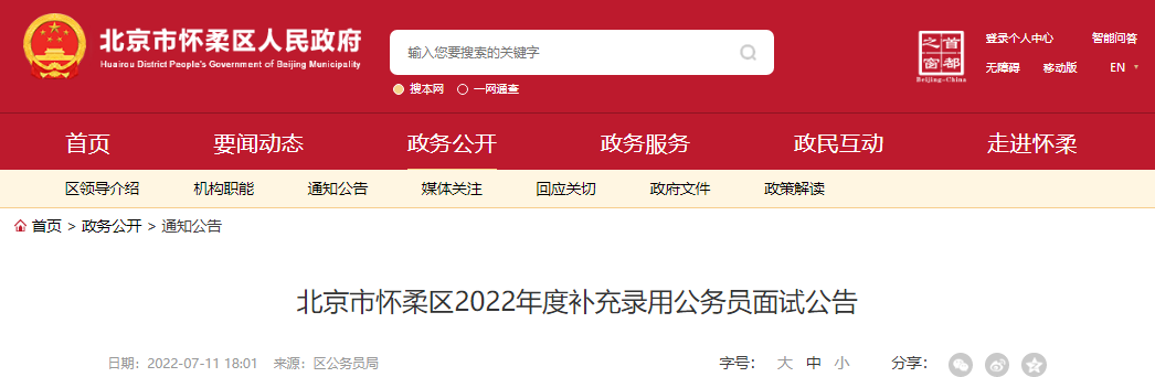 根據(jù)公務(wù)員法和公務(wù)員錄用有關(guān)規(guī)定,現(xiàn)就北京市懷柔區(qū)2022年度補充錄用公務(wù)員面試有關(guān)事宜通知如下: