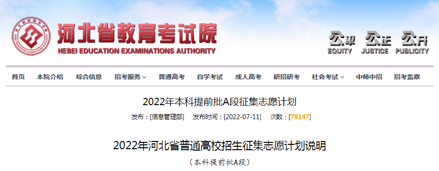 從河北省教育考試院了解到,2022年河北省普通高校招生征集志愿計劃說明(本科提前批A段)已發(fā)布,詳細內(nèi)容如下: