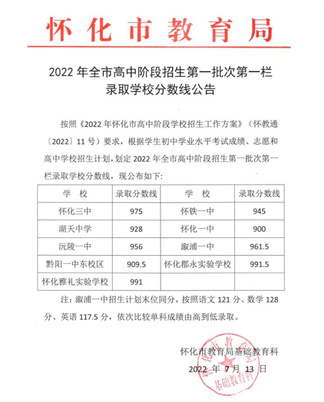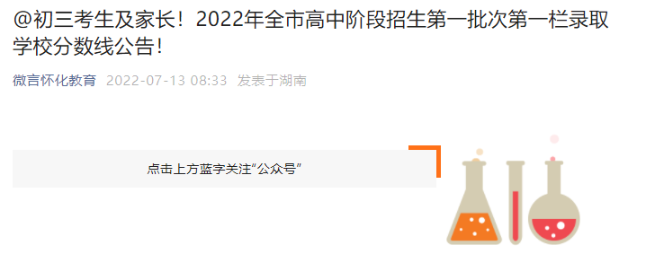 小編根據(jù)微言懷化教育發(fā)布“2022年全市高中階段招生第一批次第一欄錄取學(xué)校分?jǐn)?shù)線公告”得知,2022年湖南懷化中考分?jǐn)?shù)線已公布,詳情如下: