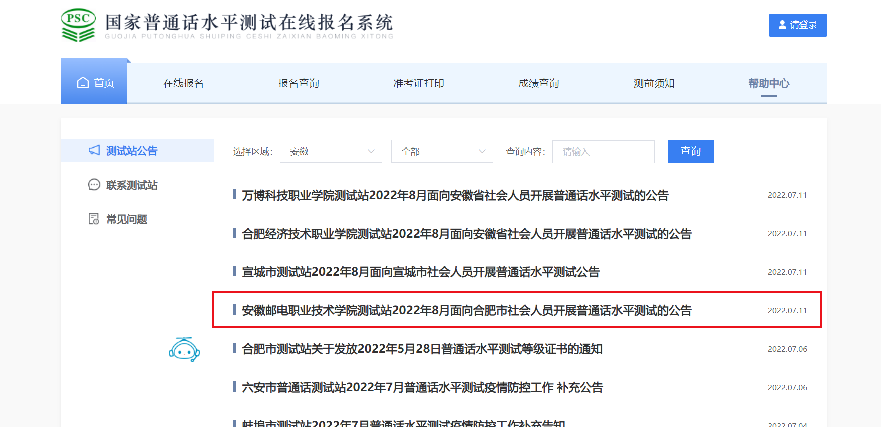 為推廣普通話和滿足合肥市廣大考生求職就業(yè)需要,并報(bào)學(xué)院和合肥市/區(qū)/縣疫情防控部門同意,我站擬于2022年8月舉辦一期面向社會(huì)人員的普通話水平測試。2022年7月18日(周一)上午10點(diǎn)起開通網(wǎng)上報(bào)名,2022年8月13、14、27、28日測試,共800個(gè)名額,報(bào)滿即止。