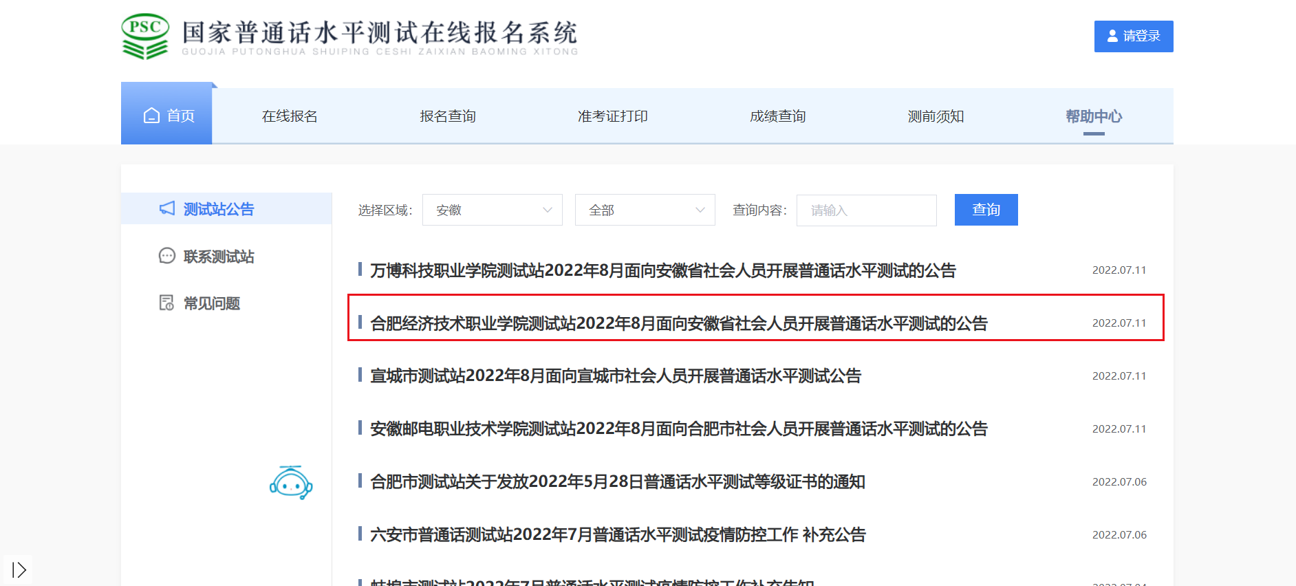 從國家普通話水平測試在線報名系統(tǒng)發(fā)布的《 2022年8月安徽合肥經(jīng)濟(jì)技術(shù)職業(yè)學(xué)院面向社會人員開展普通話水平測試的公告》得知,2022年8月安徽合肥經(jīng)濟(jì)技術(shù)職業(yè)學(xué)院普通話報名時間、條件及入口已公布,報名時間為7月18日-7月24日,具體詳情如下: