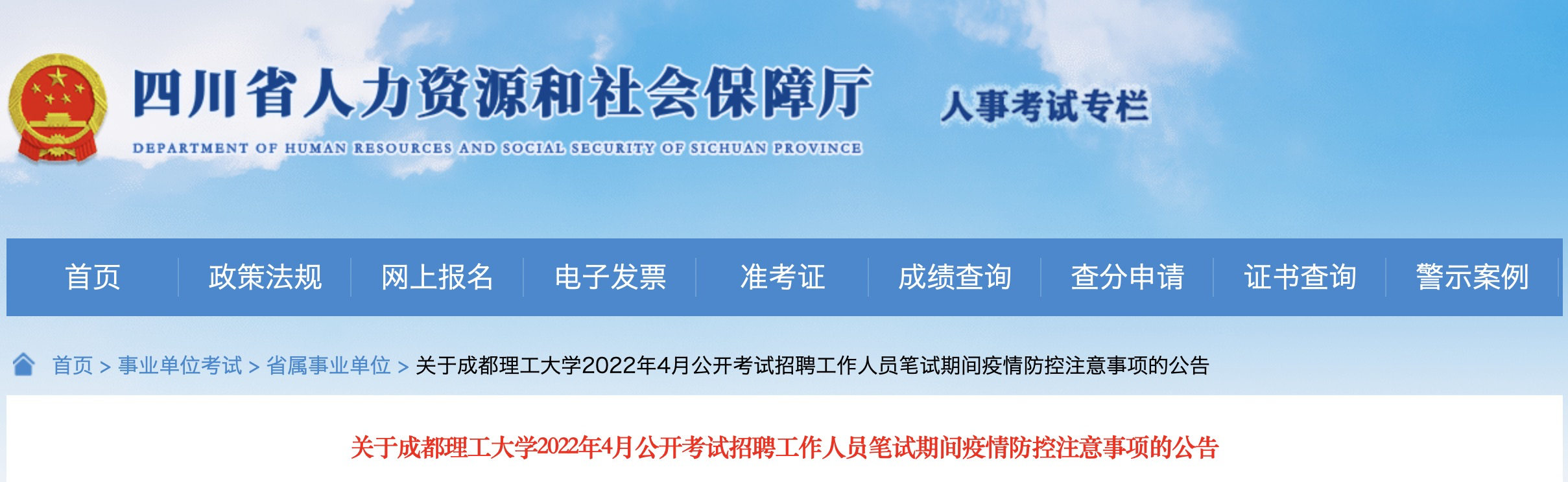 四川成都理工大學(xué)2022年4月考試招聘工作人員筆試期間疫情防控注意事項(xiàng)公告已發(fā)布,現(xiàn)將公告原文發(fā)布如下: