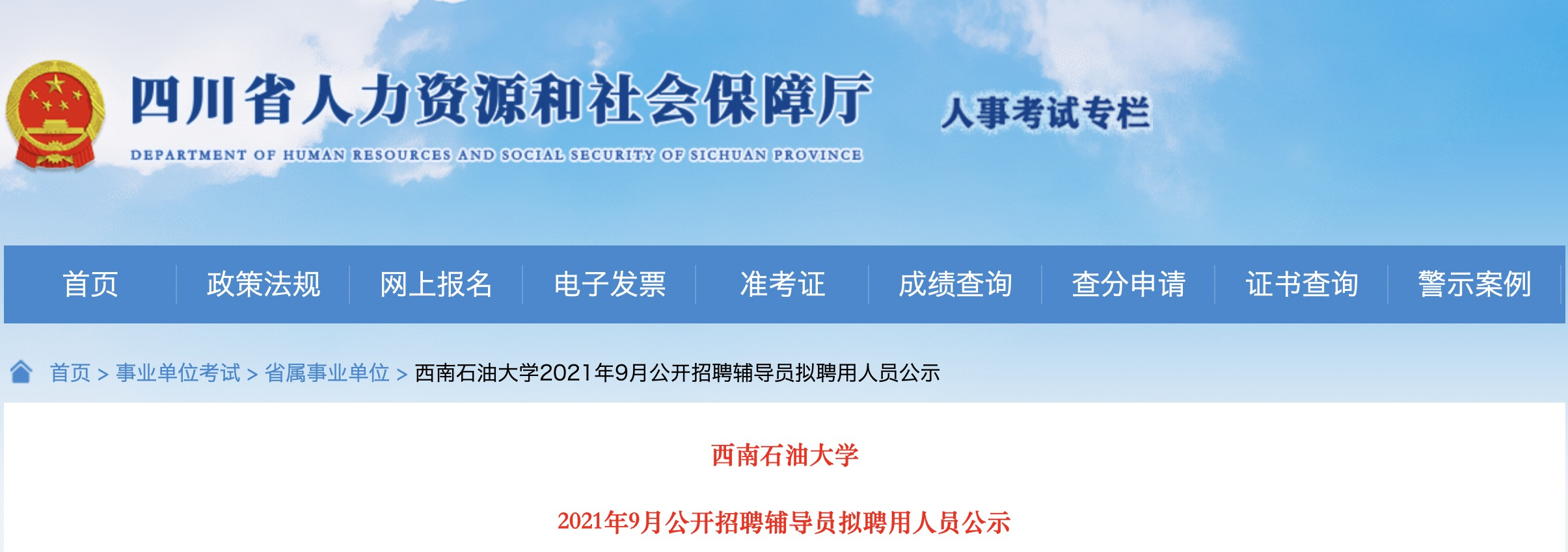 西南石油大學(xué)2021年9月公開(kāi)招聘輔導(dǎo)員擬聘用人員名單公示