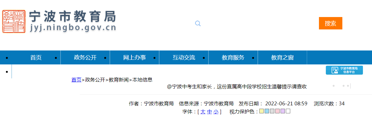 從寧波市教育局了解到,2022年浙江寧波高中段學(xué)校招生溫馨提示已發(fā)布,詳細(xì)內(nèi)容如下: