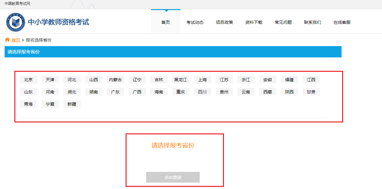 進入報名系統(tǒng)后,選擇符合報考條件的省份,然后“點擊登錄”。