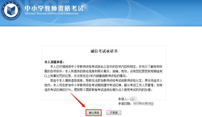 注冊完畢后,將彈出“誠信考試承諾書”,然后點擊“確認承諾”。