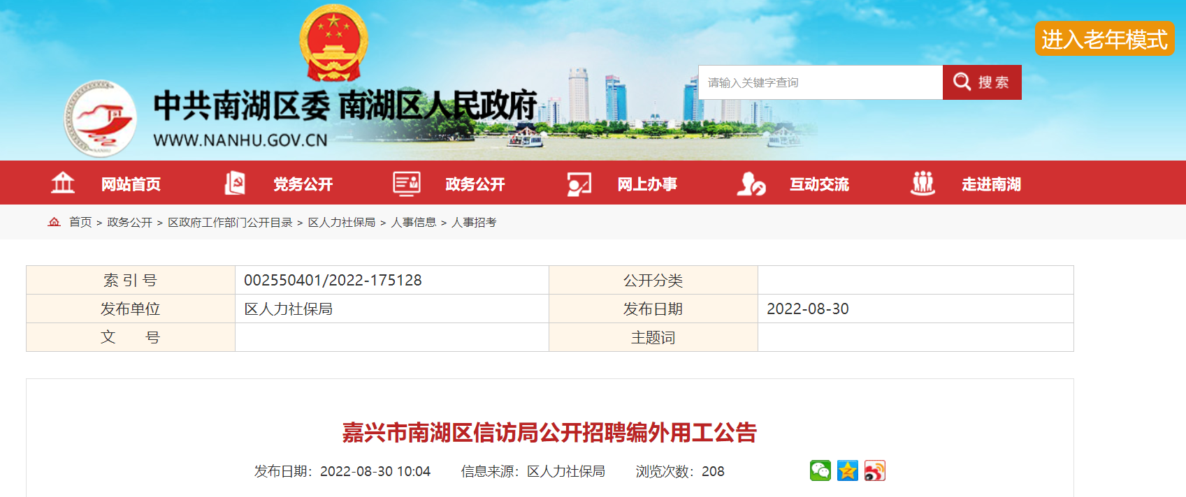 原文標(biāo)題:嘉興市南湖區(qū)信訪局公開招聘編外用工公告