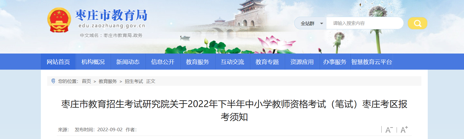 從棗莊市教育局獲悉,2022年下半年山東棗莊中小學(xué)教師資格考試(筆試)報考須知已公布,請相關(guān)人員仔細(xì)閱讀,具體詳情如下: