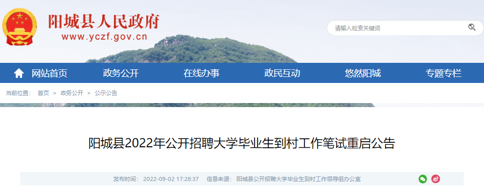根據(jù)工作安排和疫情防控形勢,經(jīng)研究,決定重啟陽城縣2022年公開招聘大學(xué)畢業(yè)生到村工作筆試?,F(xiàn)將有關(guān)事項公告如下: