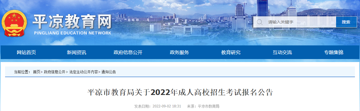 原文標題:平?jīng)鍪薪逃株P于2022年成人高校招生考試報名公告