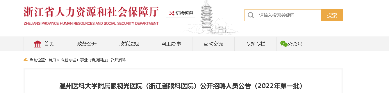 2022年浙江省溫州醫(yī)科大學(xué)附屬眼視光醫(yī)院(浙江省眼科醫(yī)院)公開招聘人員(第一批) ,報名時間:2022年2月24日上午11點截止,現(xiàn)將招聘公告原文發(fā)布如下: