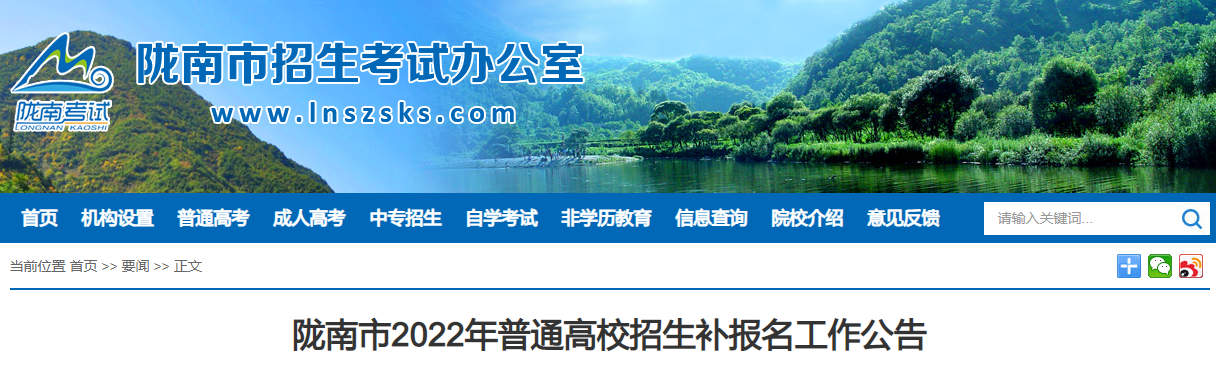 從隴南市招生考試辦公室了解到,甘肅省隴南市2022年普通高校招生補(bǔ)報(bào)名工作公告已發(fā)布,詳細(xì)內(nèi)容如下: