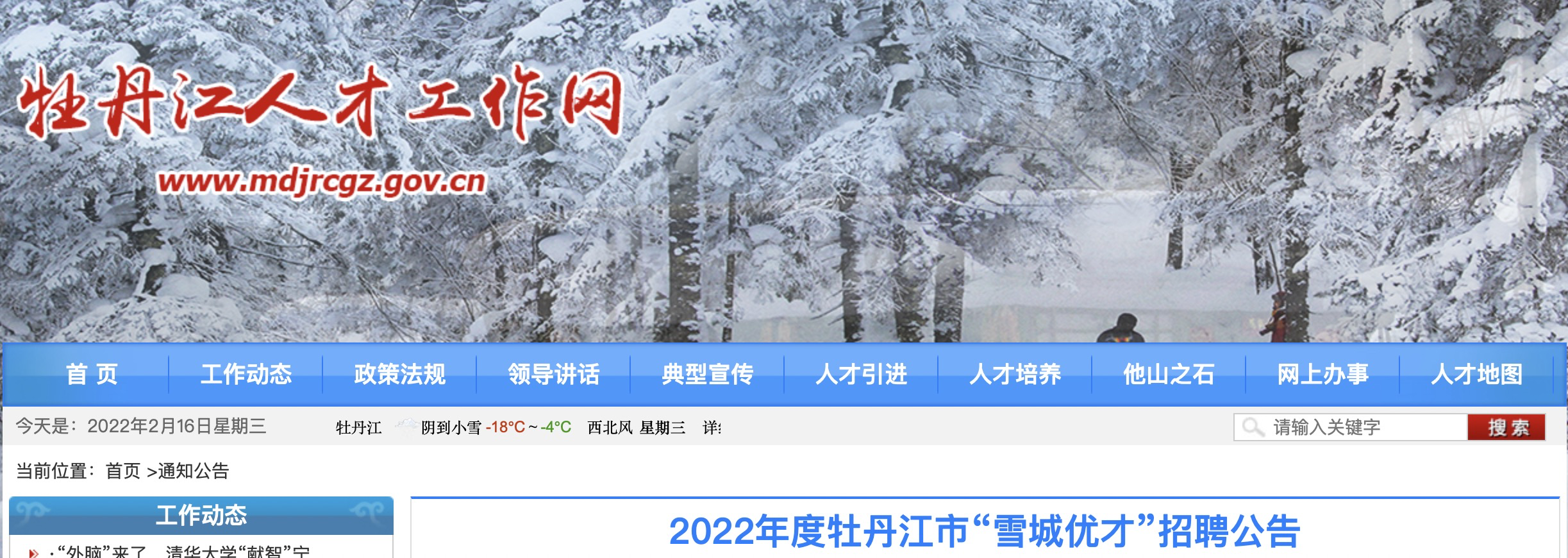 2022年度牡丹江市“雪城優(yōu)才”招聘工作領導小組