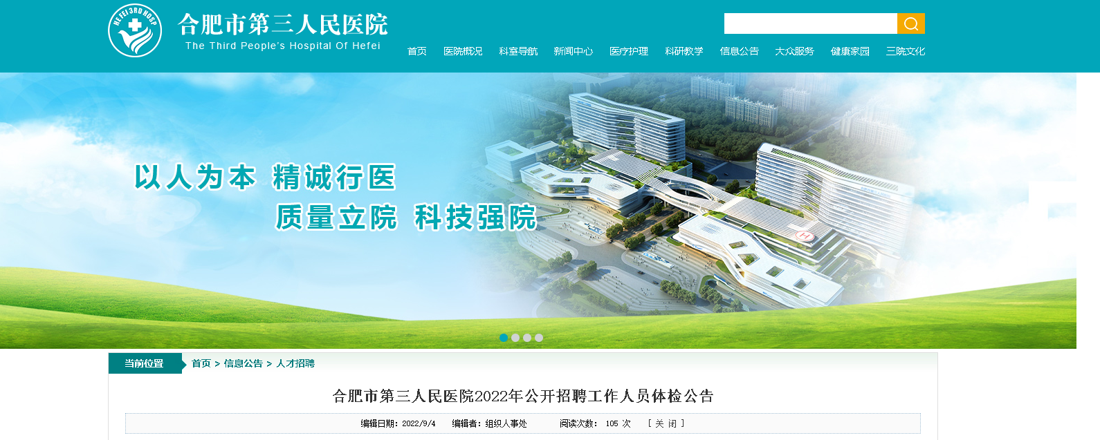 2022安徽合肥市第三人民醫(yī)院招聘體檢公告已出,詳細(xì)請見公告內(nèi),現(xiàn)將招聘公告原文發(fā)布如下: