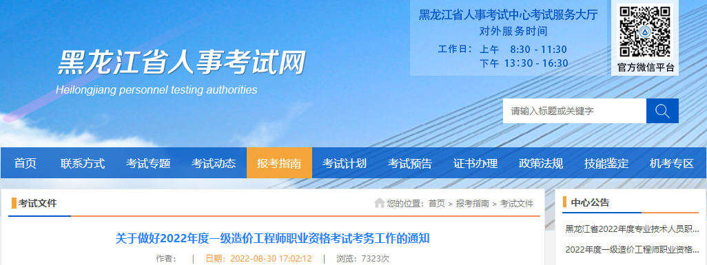 點擊報名:2022年黑龍江一級造價工程師考試報名入口