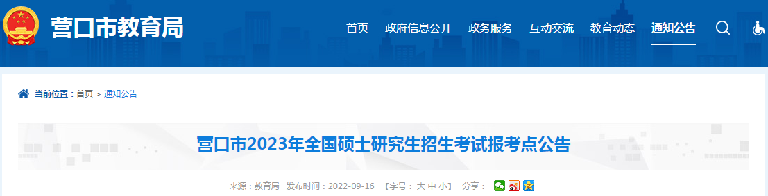 原文標題:營口市2023年全國碩士研究生招生考試報考點公告