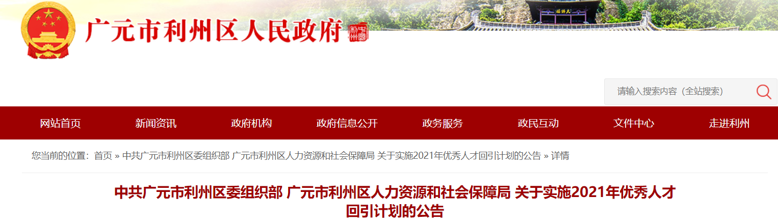 2021四川省廣元市利州區(qū)人力資源和社會保障局實施優(yōu)秀人才回引計劃已發(fā)布。報名時間:自公告發(fā)出之日起至2021年12月24日。為您整理了以下內容,供您參考。
