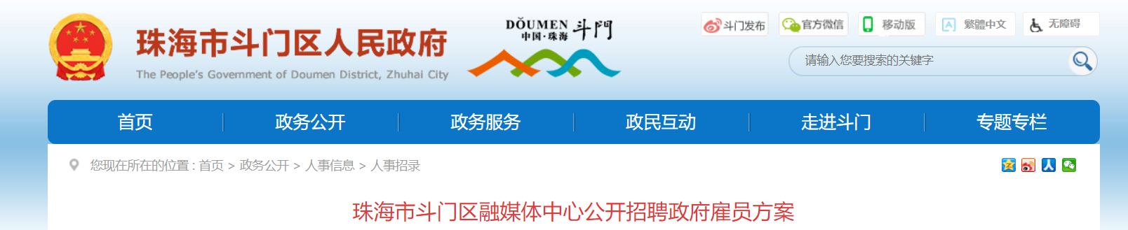 珠海市斗門區(qū)融媒體中心公開招聘政府雇員計(jì)劃