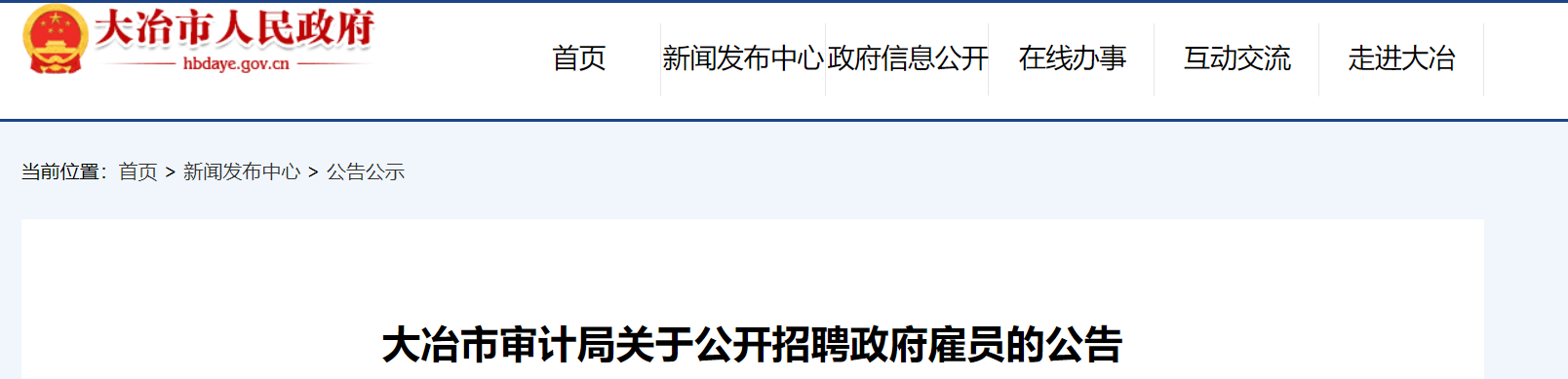 (2)《大冶市審計(jì)局公開(kāi)招聘政府雇員報(bào)名表》一份(見(jiàn)附件);