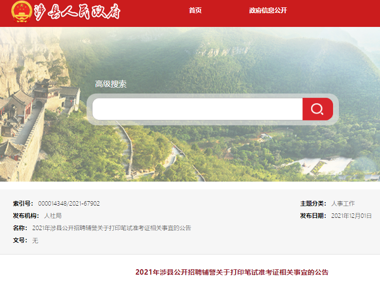 2021年涉縣公開招聘輔警筆試定于12月4日進行,現(xiàn)將有關(guān)事項公告如下: