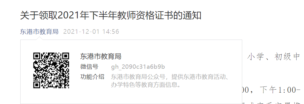 現(xiàn)將2021年下半年?yáng)|港市教育局認(rèn)定通過(guò)的幼兒園、小學(xué)、初級(jí)中學(xué)教師資格證書(shū)領(lǐng)取事項(xiàng)通知如下: