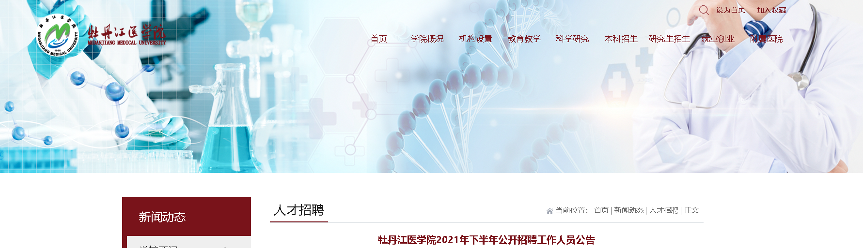 2021下半年黑龍江牡丹江醫(yī)學(xué)院招聘工作人員92人,報名時間:2021年11月29日-2021年12月7日17點,現(xiàn)將招聘公告原文發(fā)布如下: