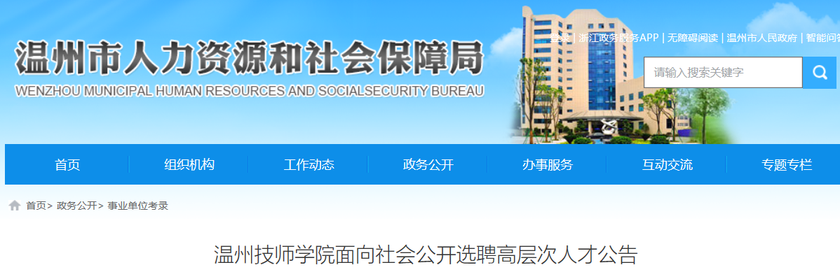 溫州技師學(xué)院面向社會(huì)公開(kāi)選聘高層次人才需求表