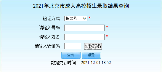 2021年北京順義成人高考考生可以通過北京教育考試院成人高考錄取結果查詢系統(tǒng)(http://query.bjeea.cn/queryService/rest/admission/111)選擇驗證方式、輸入號碼、姓名、驗證碼、點擊查詢即可獲取錄取信息。
