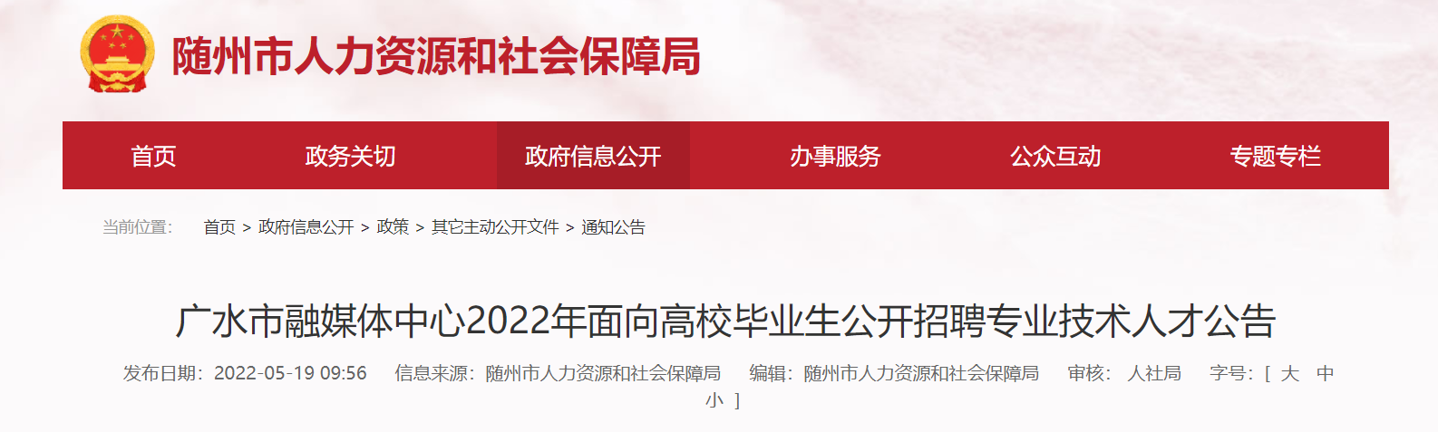 廣水市融媒體中心參加本次公開招聘,共招聘4人。具體招聘崗位詳見《廣水市融媒體中心2022年面向高校畢業(yè)生公開招聘專業(yè)技術(shù)人才崗位計劃表》(以下簡稱《崗位表》)。