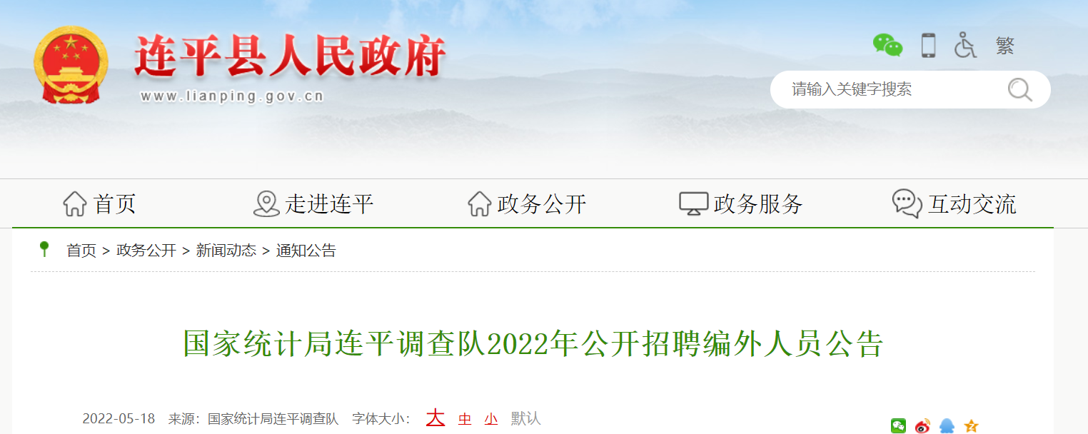 根據(jù)《連平縣人民政府辦公室關(guān)于印發(fā)連平縣機(jī)關(guān)事業(yè)單位編外人員管理辦法的通知》(連府辦〔2021〕59號(hào))要求,以及廣東國家調(diào)查系統(tǒng)聘用編外人員的有關(guān)規(guī)定,因工作需要,國家統(tǒng)計(jì)局連平調(diào)查隊(duì)決定面向社會(huì)公開招聘編外人員1名。為您整理了招聘條件和報(bào)名流程,供您參考。