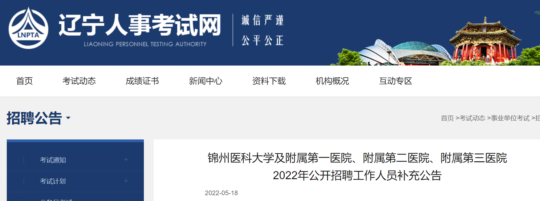 錦州醫(yī)科大學及附屬第一醫(yī)院、附屬第二醫(yī)院、附屬第三醫(yī)院2022年公開招聘工作人員報名時間延長至2022年5月31日。特此通知