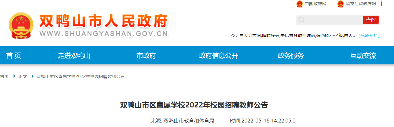 2022黑龍江雙鴨山市區(qū)直屬學(xué)校校園招聘教師61人,報名時間:公告發(fā)布之日起至2022年5月25日11:30,現(xiàn)將招聘公告原文發(fā)布如下: